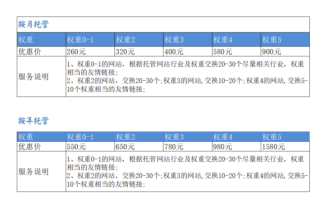 6. 托管周期為一年的客戶,托管過程中我們會不斷根據(jù)網(wǎng)站權(quán)重變化而更新更加高質(zhì)量的友情鏈接;