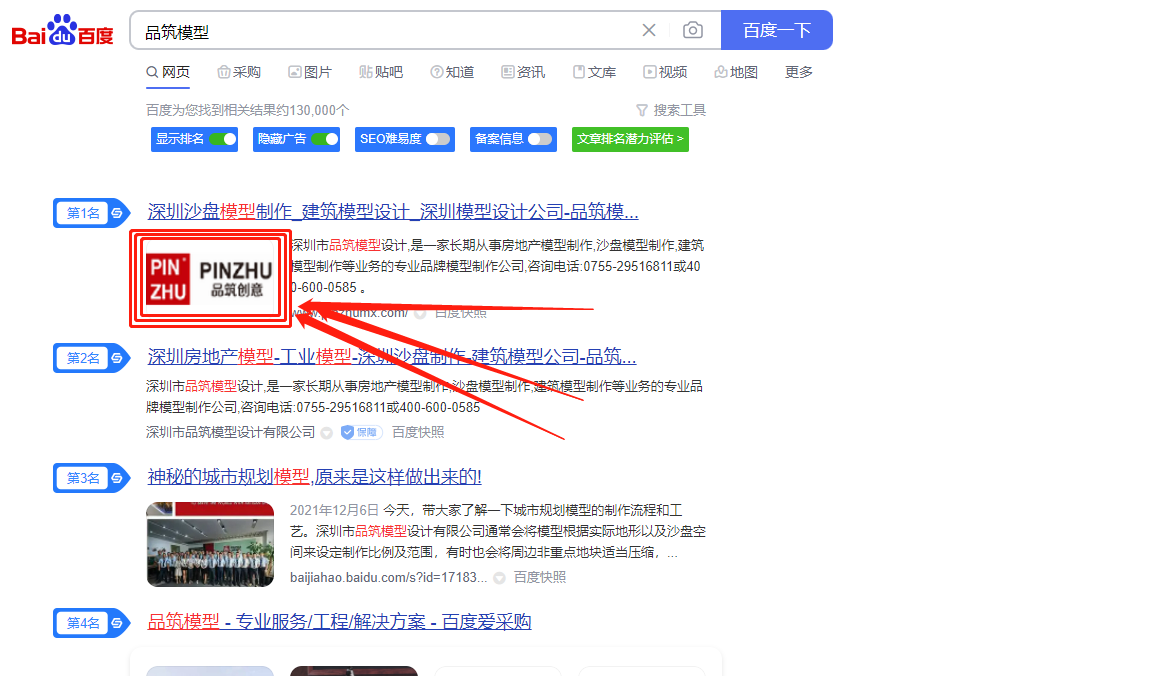 3、當(dāng)站點(diǎn)logo權(quán)限開通并成功通過審核之后,我們會發(fā)現(xiàn),在百度的搜索結(jié)果中,我的網(wǎng)站除了左邊出現(xiàn)我們網(wǎng)站的logo,搜索結(jié)果也從4行變成5行文字,外加121x75像素的logo面積,從概率學(xué)來講,展示頁面也提升30%。